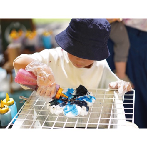 フェスを賑わすタイダイ屋【TEN -tie dye work-】です!グラデーションの美しさや色合わせの楽しさを表現するウェアを制作、全国の野外フェスやカフェなどでタイダイ体験ができるワークショップを展開しています。当日は、販売だけでなくオトナでもコドモでも楽しめる、染め体験ができます!ちょっとシミがついてしまって着なくなってしまったTシャツ、眠っていませんか?そんなTシャツをカラフルに染めて、お気に入り復活させましょう!◎新品の本体のご用意もございます◎持ち込みの場合、素材は綿か麻限定となります。