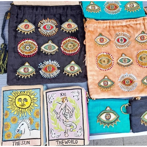 タイを中心に各国でセレクトしたアクセサリーやファッション小物を扱う移動型エスニック雑貨屋。動物や目玉モチーフ、タイの山岳民族モン族などの刺繍をあしらった個性的なバッグやポーチ、帽子、ストール、木や真鍮などの素材で作られたピアスなど