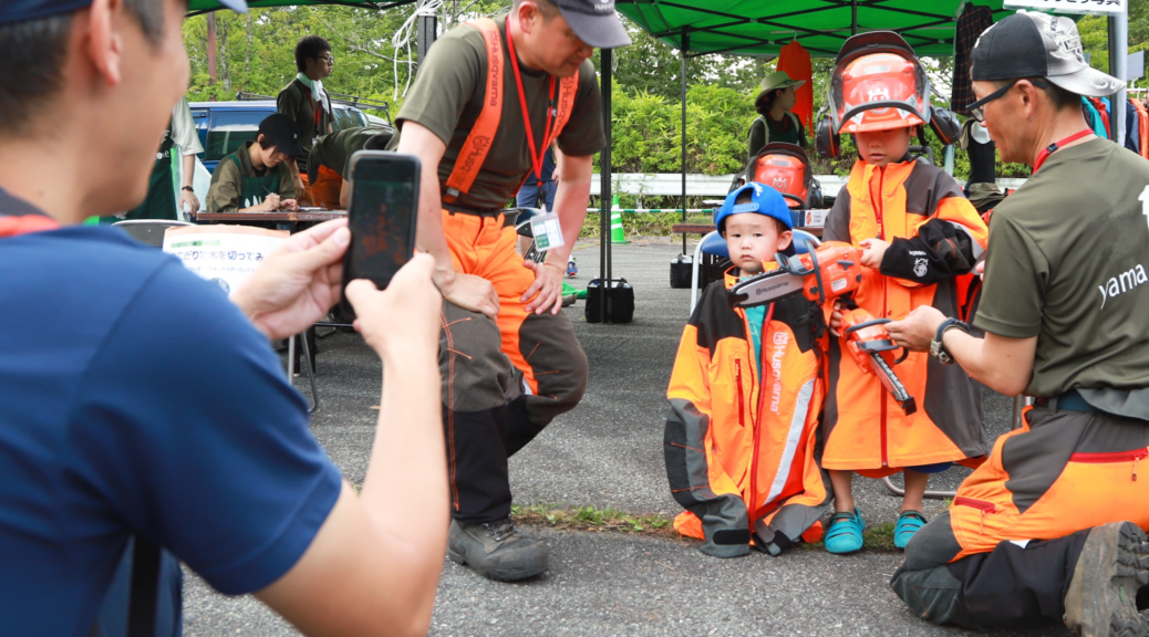 林業の活動を紹介するパネル展示に加え、木の輪切りに触れて種類を当てるゲームや、林業の装備や防護服を実際に身につけられる体験もご用意。「森で学び 森を未来へつなぐ」「木で遊び 木を知る」を通じて、林業の魅力や木の個性にふれていただけます