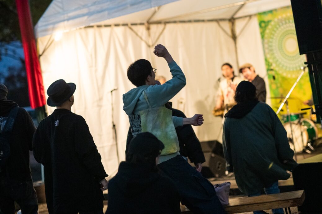 雨の音をBGMに音楽に聴き入る時間。 雨上がりの、少しひんやりとした土の匂い。 傘を差しながら、見知らぬ人とブースの前で身を寄せ合う瞬間。